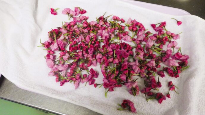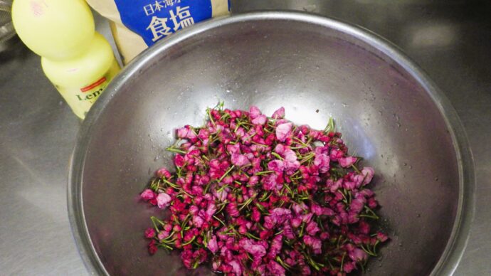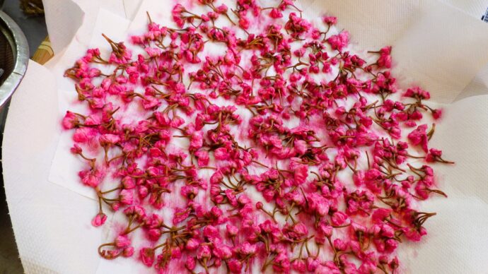 厨房では毎年、職員全員で桜の花を収穫し桜の花の塩漬けを作成しています!