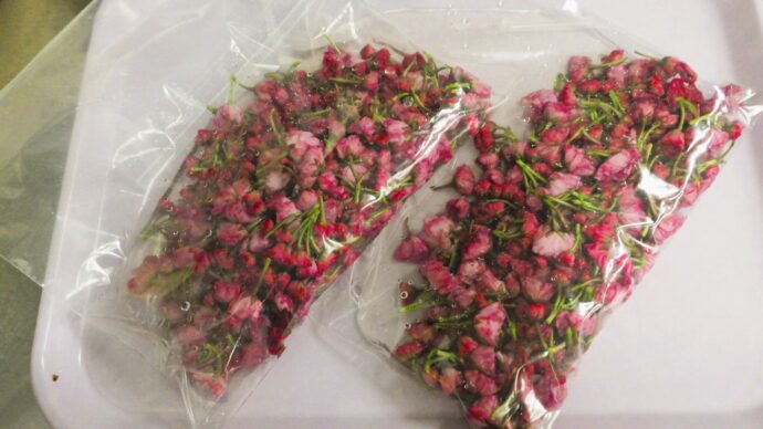 ①桜の花を水洗いし、水分をふき取りジップロックなどの袋に入れる