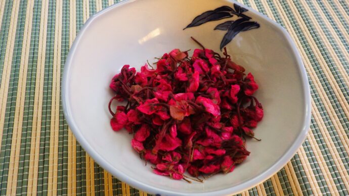 この八重桜は桜の花の塩漬けによく使われる桜になっています。