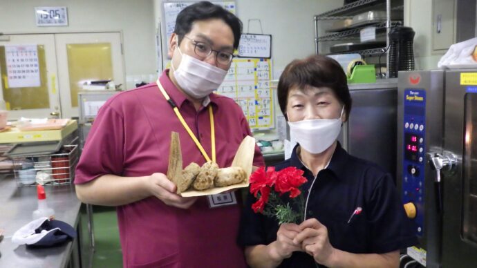 利用者様とお食事中にお話をする中で「昔はこの竹皮にご飯などを包んでいろいろなところへ持って行ってたべたんですよ」というお話が聞け、昔を思い出されて楽しく食事をされていました。