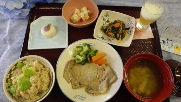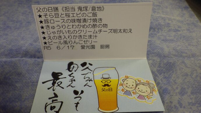 6月の行事食は、父の日をイメージしたお膳を提供しました。