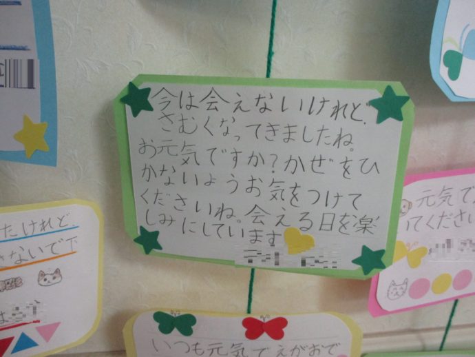 (甘木愛光園)利用者様の事を考えながら、メッセージを書いて、飾りを作ってくれたと思うと、心が温かくなります。