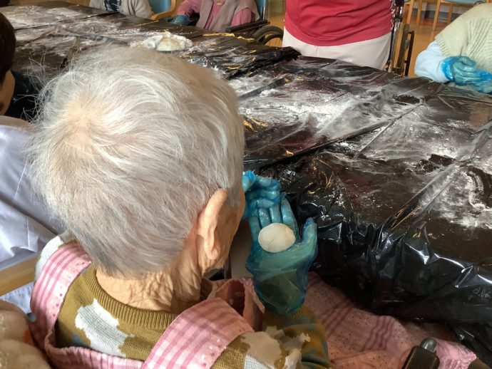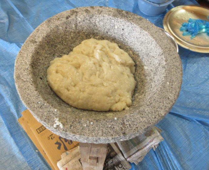お米の粒が少し残った、やわらかいお餅のできあがり。