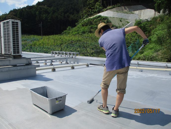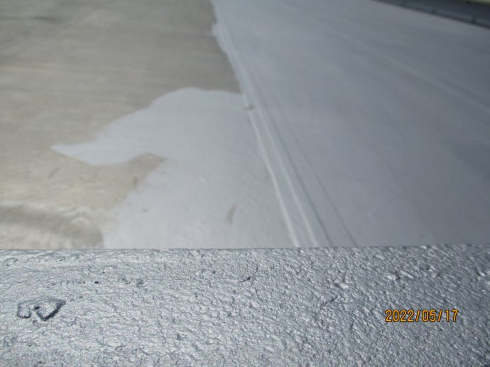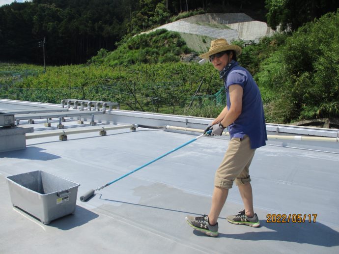 作業工程②銀色の防水塗料をローラーで塗ります(昨日から作業工程②開始)