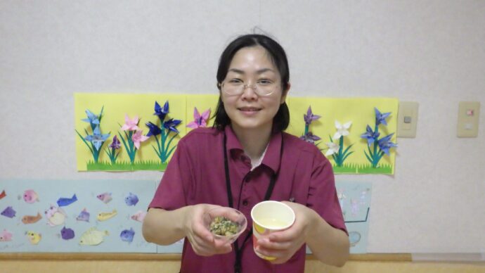最後に夏バテ防止に”ゴーヤ🥒のツナ味噌和え”と”手作りスポーツドリンク🍹”を試食していただきました。