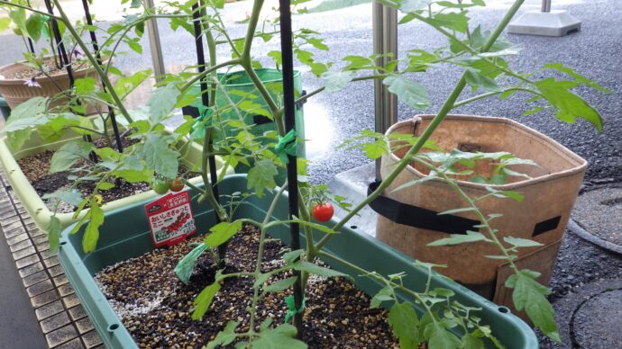 プランターに植えており、職員用通用口に並べています。