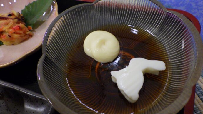 デザートには、”中秋の名月🌕”にみたて、コーヒーゼリーを夜空に、うさぎ(牛乳ゼリー)と月(カスタードクリーム)をトッピングして”お月見ゼリー”としました。