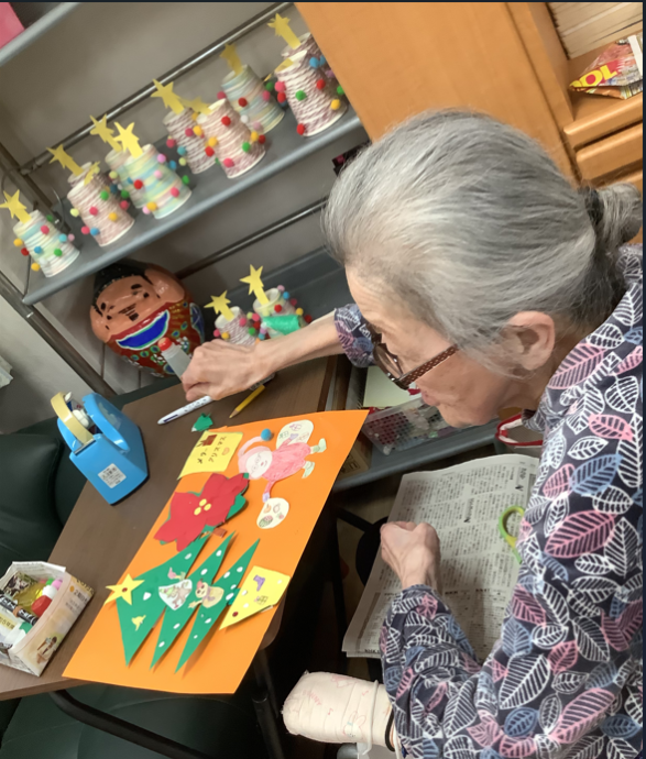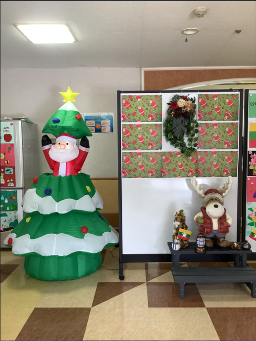 愛光園の玄関に飾られているリースやサンタクロースを見て、ひらめいたそうです。創造力がとても素敵です♡