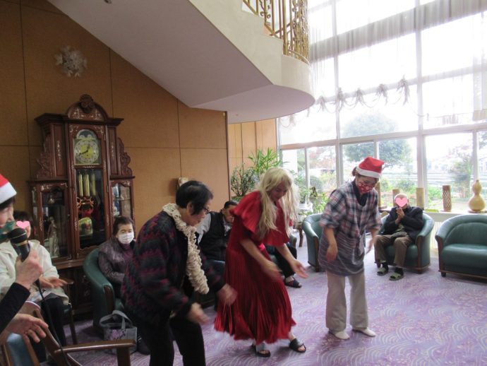 ▲『河内男節』の歌にあわせて、ご入居者様即興の踊りです❗❗