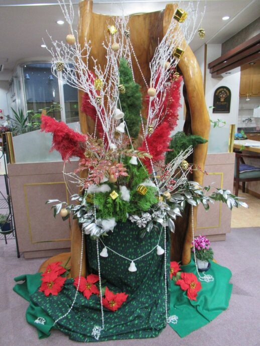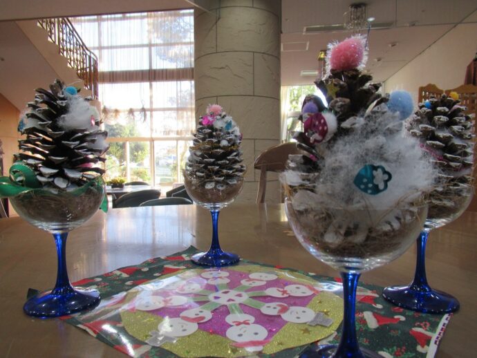 🎄入居者の方がのんびり村で作ってきたツリーです。
