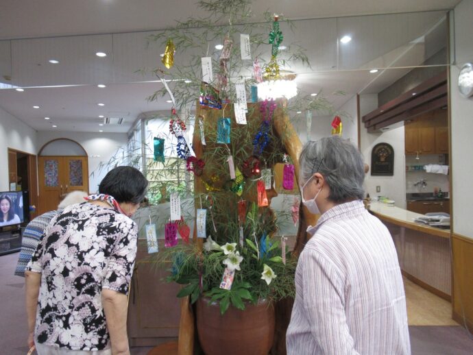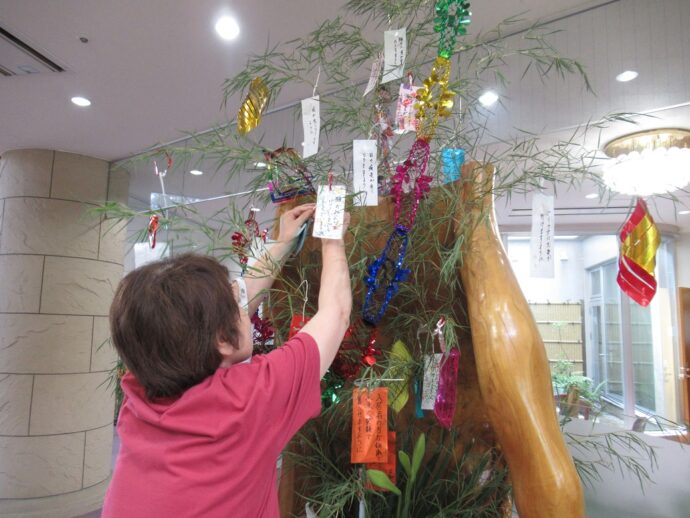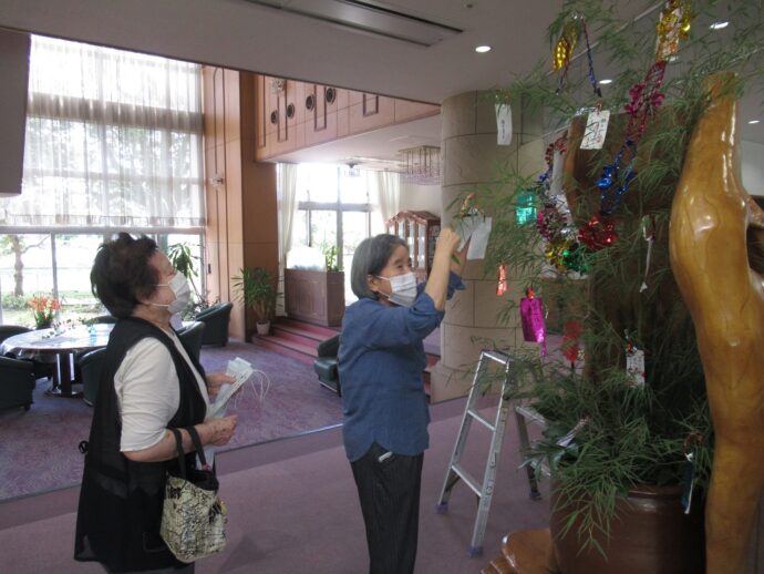 ケアハウス雅でも、皆様と七夕飾りをしました。