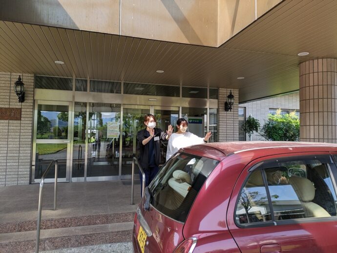 皆さん笑顔で、デイサービスへ出発されました。