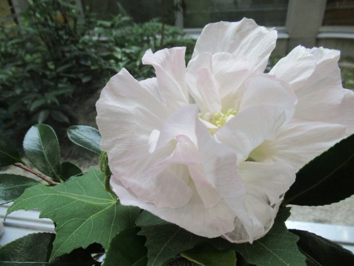10月ケアハウス雅の敷地内に酔芙蓉(スイフヨウ)が咲き出しました。スイフヨウは朝早くに花は白ですが、昼過ぎにはピンクになり、夕方には酒に酔ったように濃桃色になるそうです。