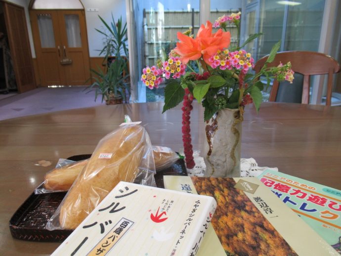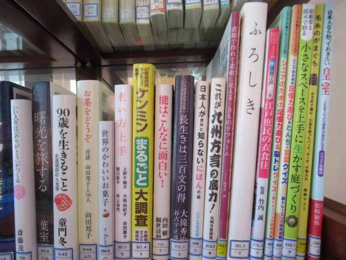 毎月1回、朝倉市図書館から巡回文庫に来てもらっています。入居者様の希望も入れながら、色々な本を50冊入れ替えています。