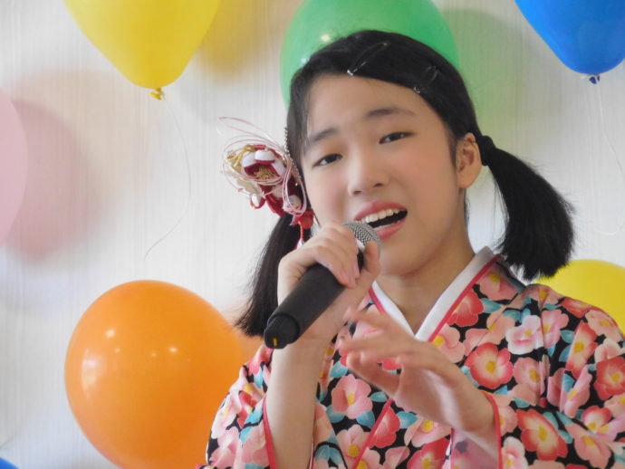会場にはデイサービス・TakeTakeヒルズ利用者様、筑前梨ノ木城の入居者様はじめ、朝倉にお住いの方など多くの方がいらっしゃいました。皆さん、小さな実力派歌手の力いっぱいの歌声に心から感激していらっしゃいましたよ!