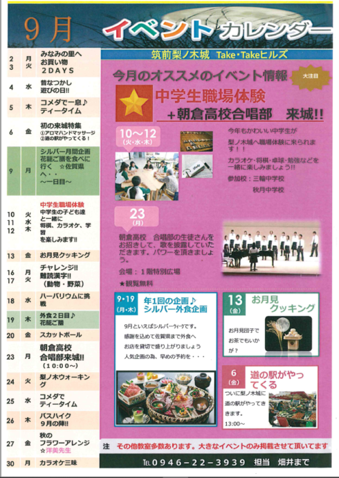 9月は朝倉高校が合唱部が来て下さる予定です!