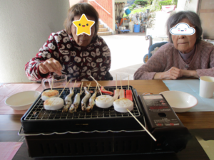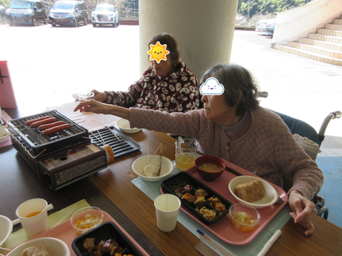 数日前から肌寒く心配していましたが当日は天気にも恵まれ、利用者様も外での食事でとても楽しまれてありました