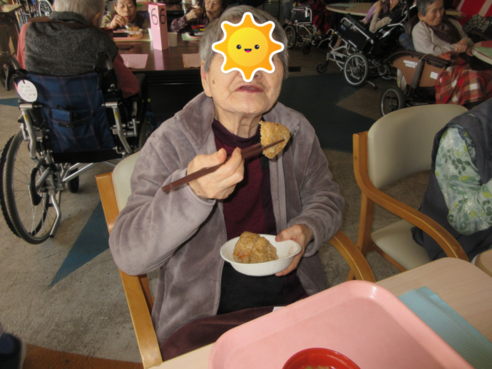 また「Aコープあさくら」のおにぎりを食べ、利用者様は「美味しい」と舌鼓を打たれておりました。