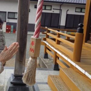 皆さん手を合わせ神社でお参りしました。「今年一年宜しくお願いします。」