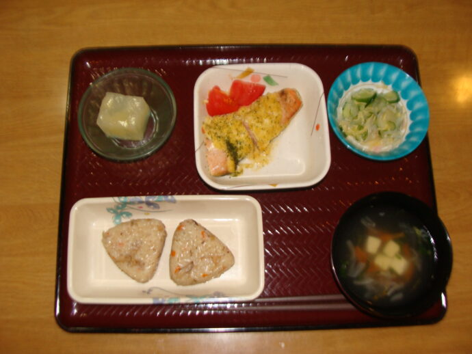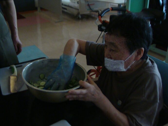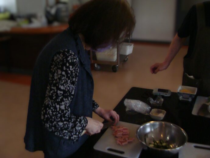 今回は、利用者様とかしわおにぎりと春雨サラダを作りました。