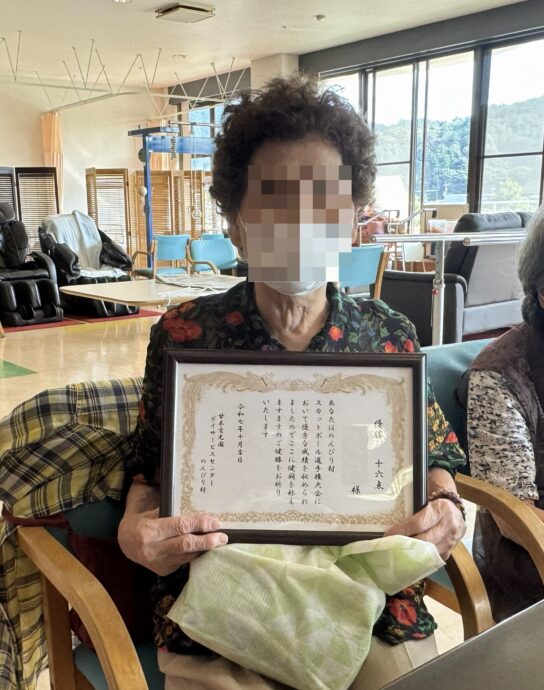優勝された利用者様には、表彰状と景品をお渡ししました。