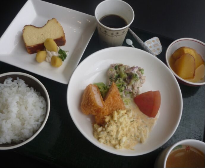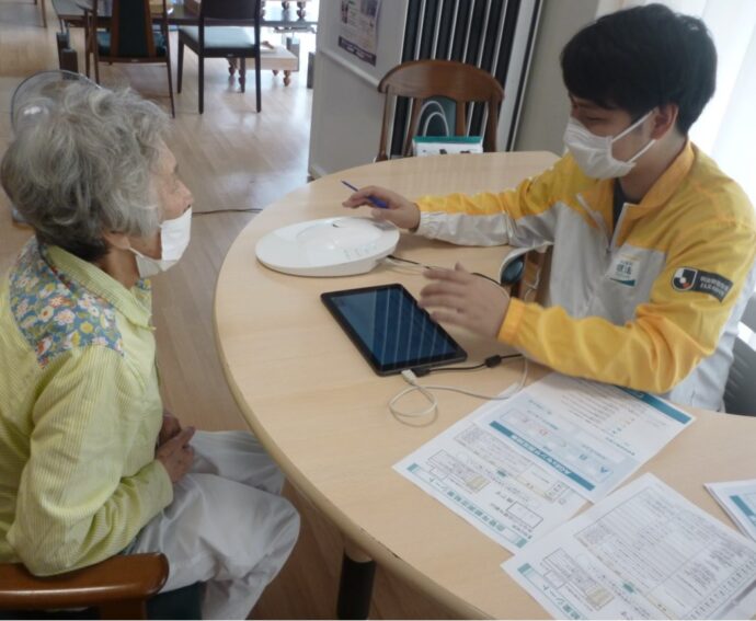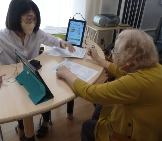 脳年齢と血管年齢を測定、健康アドバイスをして下さいました。入居者様の健康意識は高く、多くの参加がありました。次は「なしのき膳」と「コーヒーとデザートの日」です。