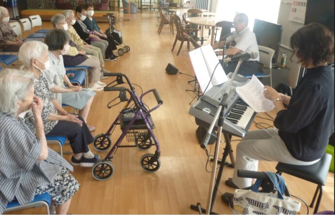 おふたりの歌に合わせ、入居者様も声を合わせて歌います。