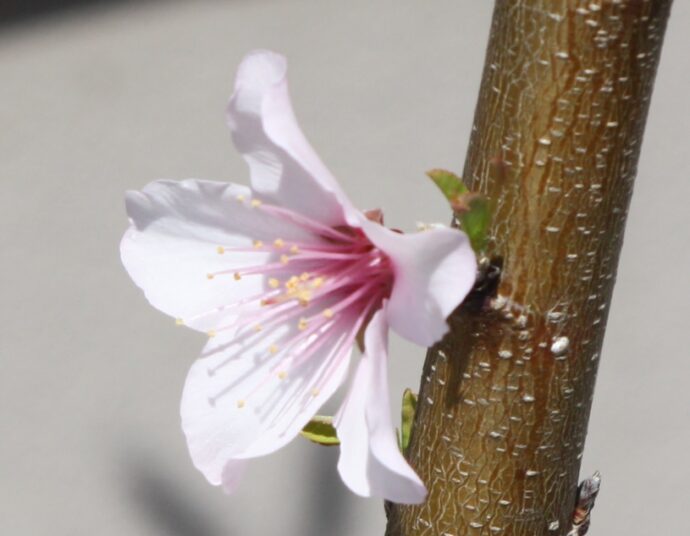 アーモンドの花言葉は「希望」「真実の愛」・・・素敵ですね。まだ2mの 赤ちゃんアーモンドですが梨ノ木城でスクスク育ってもらいたいです。