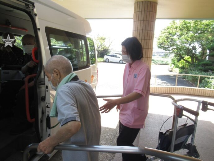 デイサービスご利用の方は送迎車に安全に乗って頂き送り出しをします🌟