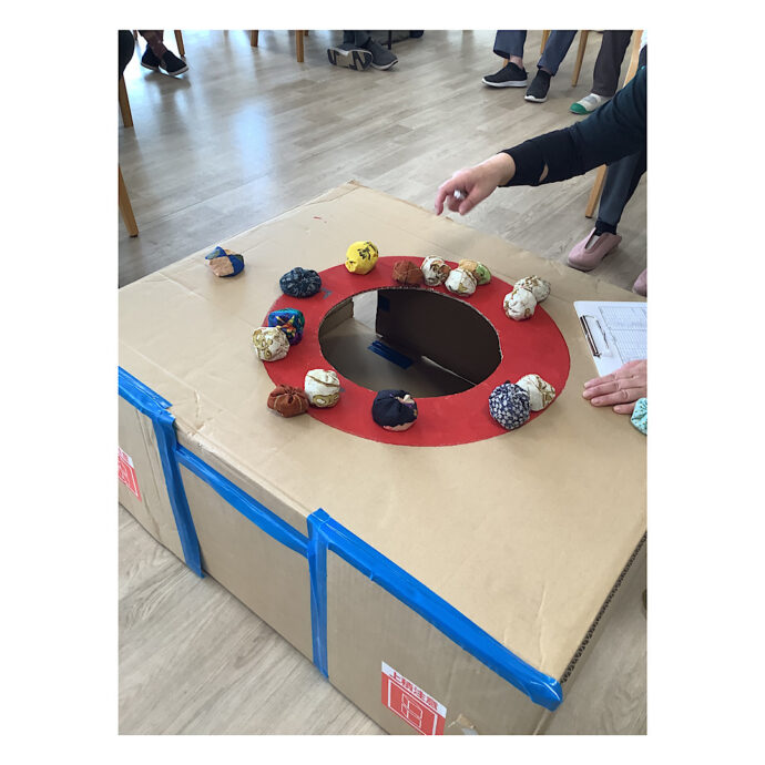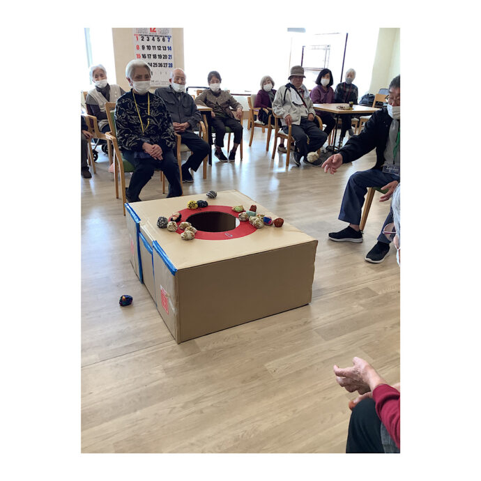 2日目は、穴に落とさない様にお手玉を投げ点数を競いました👏