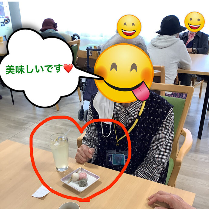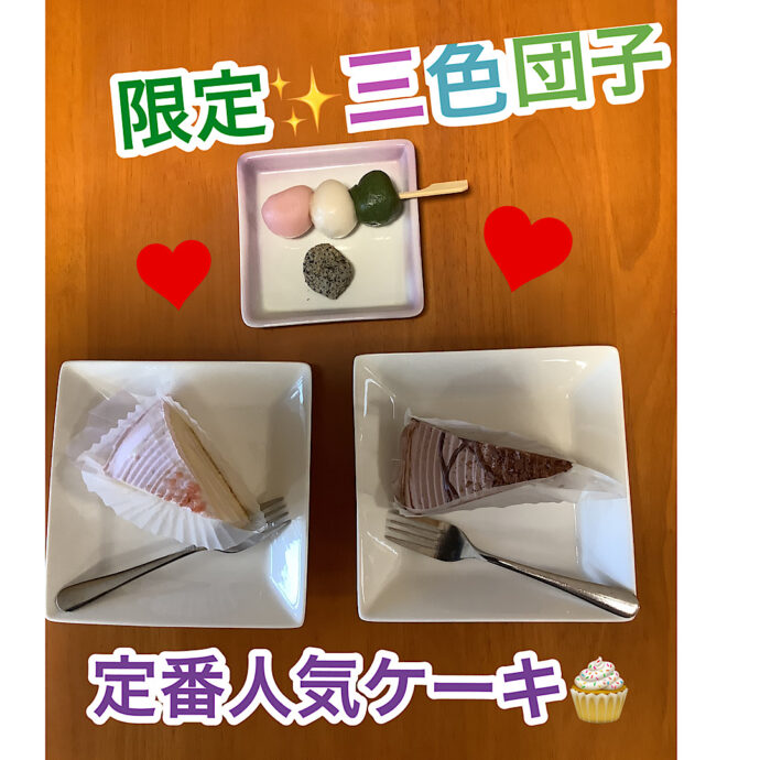 今回は春のお花見セットということで ケーキ🍰に加え、3色団子🍡をメニューに入れて食べていただきました☺️✨♩