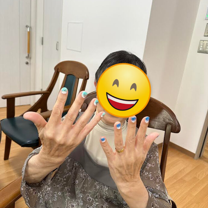 この2日間では、入浴時に化粧水や乳液等のフェイスケアを実施させていただき、午後には女性の利用者様に対して、担当職員がハンドマッサージとネイルを行いました!🧴💅🤩