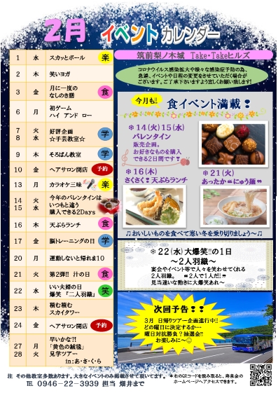 2月のイベントカレンダーです