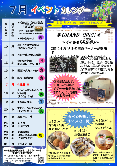7月のイベントカレンダーです。