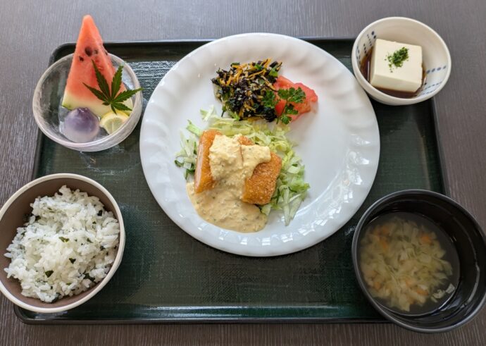 最高ですね!梨ノ木城の食事は本当に素晴らしいです。厨房の職員さんの食に対する真剣さが伺えます。