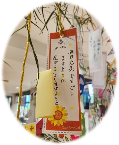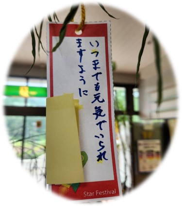 短冊に書いていただいた願い事には、やはり健康に関することがほとんどでしたが、なかには 【 宝くじが当たりますように 1,000円】