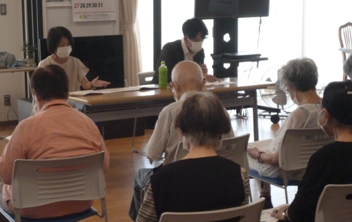 「健康状態の確認をしよう!」「健康習慣を身につけよう!」「病気になる前に備えよう!」という内容でどなたも真剣に聞き入っておられました。身体の老化は50歳代からという言葉は私の心にもガーン!と響きました。健康寿命は自分で築くもの!入居者様と共に健康寿命を延ばします!