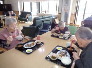 みんな昼食がすすむ、すすむ、はい、もう完食です。