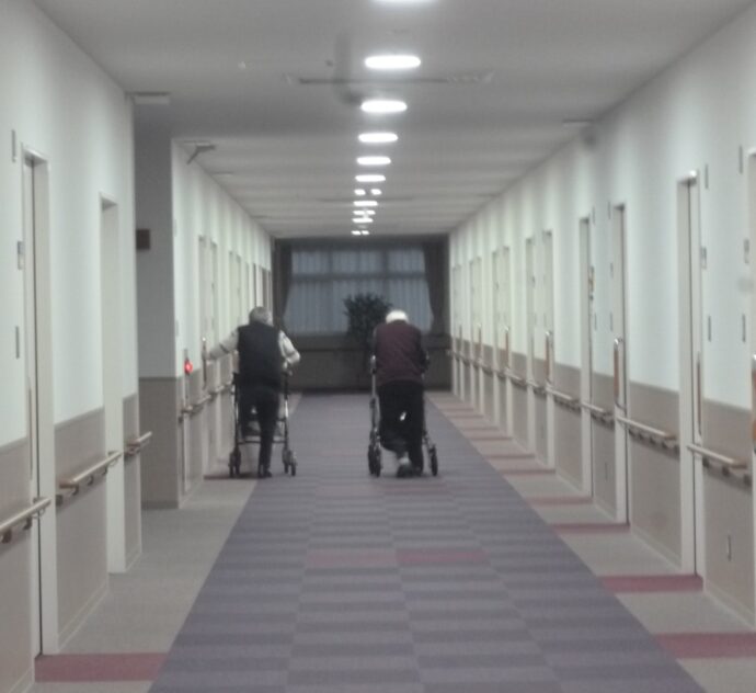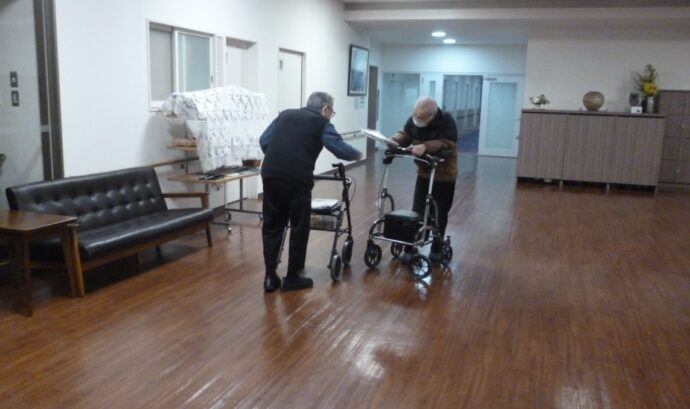 毎朝、新聞がポストに入るとどちらか早い方が新聞を持っていかれます。「ありがとう」と言葉を交わすと、並んで歩き、れぞれのお部屋へ戻られます。
