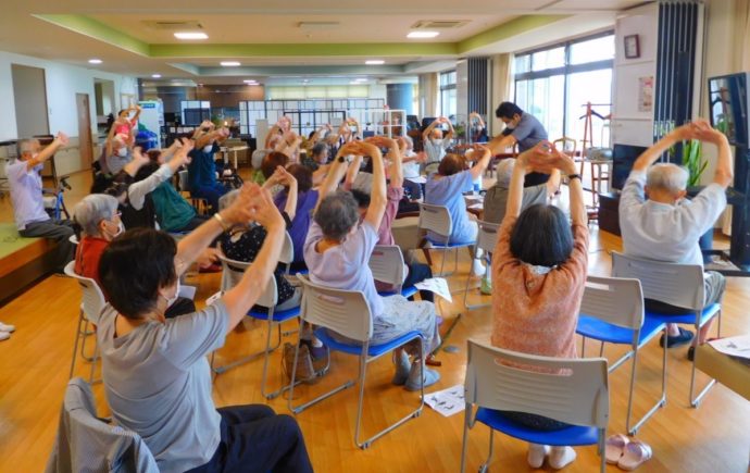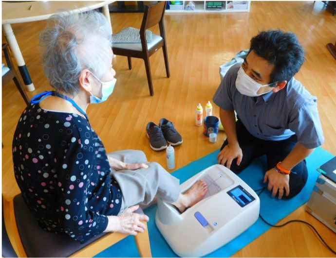 骨密度測定とフレイル予防(体や認知機能の低下がみられる状態)の運動をしました。