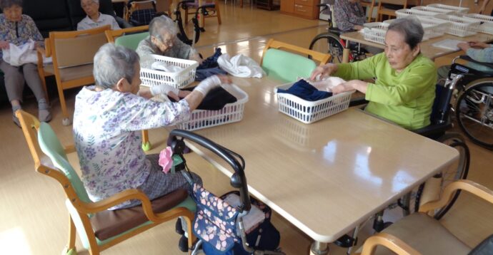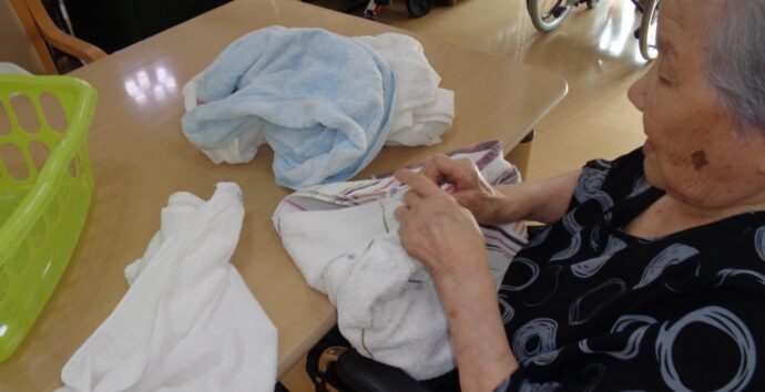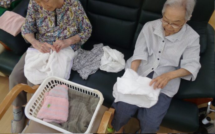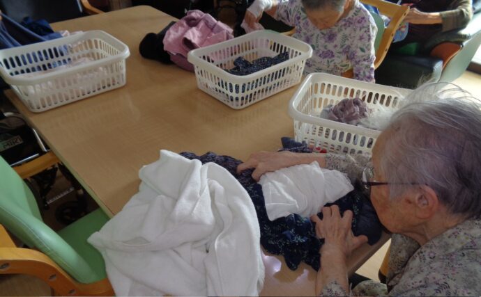 愛らんどでは毎日、洗濯物は利用者、職員みんなで片付けます。