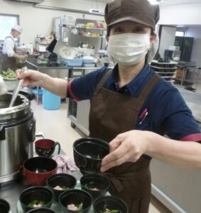 花の麩がキレイです。もちろん末武さんも素敵です✨「出汁にもこだわりました」とこっそり教えてくれました。早朝からありがとう!お疲れさまです!