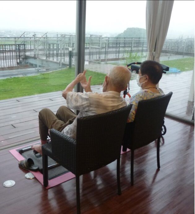 台風10号が接近。朝倉も高齢者等避難が発令され、梨ノ木城も台風に備えました。その翌朝7時、入居者様お2人の会話が聞こえてきました。