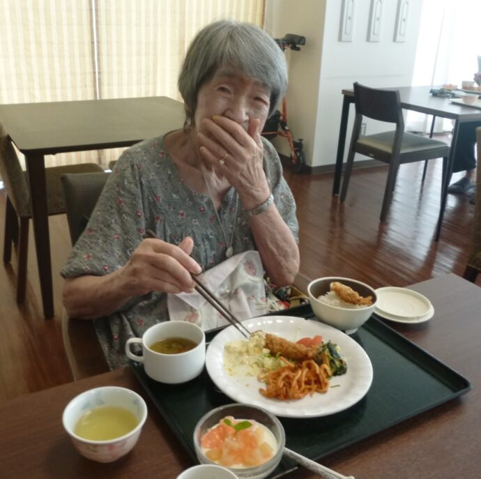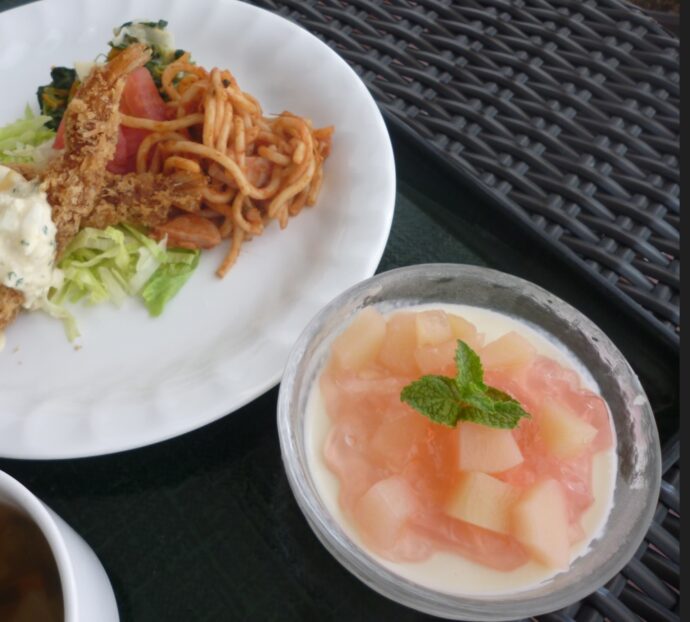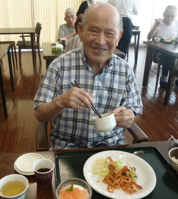 外はギッラギラの酷暑。しかし、梨ノ木城の中は過ごしやすく優雅にクラッシックのBGM♪コーヒーのいい香りが漂います。8月10日は入居者様楽しみのデザートとコーヒーの日でした。8月のデザートは「桃のレアチーズ」🍑