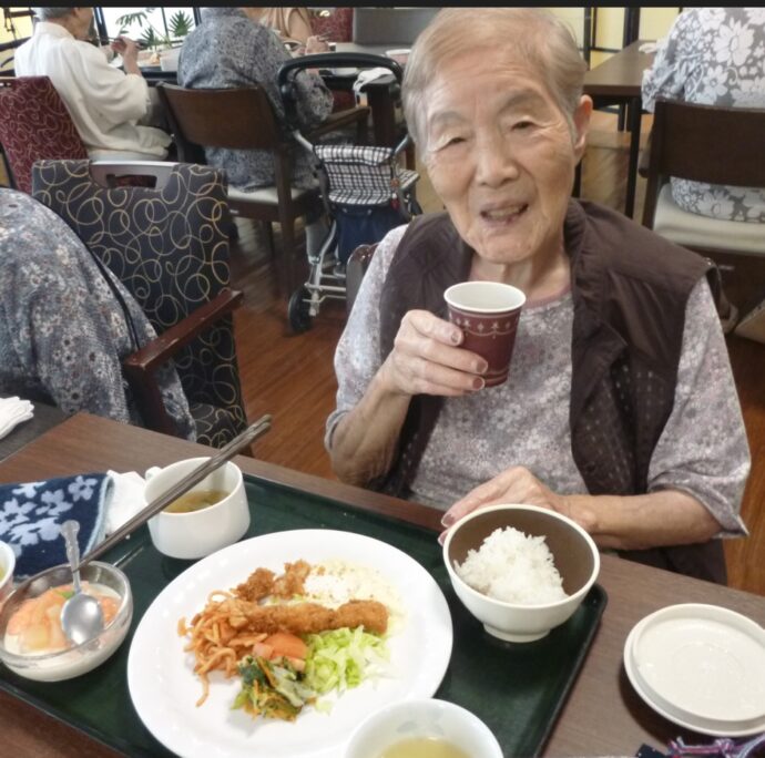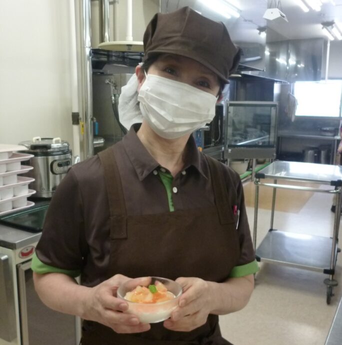 末武さんの桃のレアチーズと事務職員さんの淹れたドリップコーヒーは沢山の入居者様へ幸せを届けました。