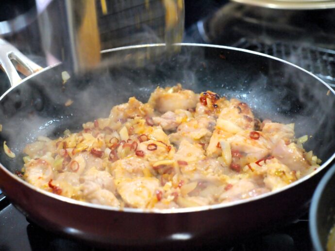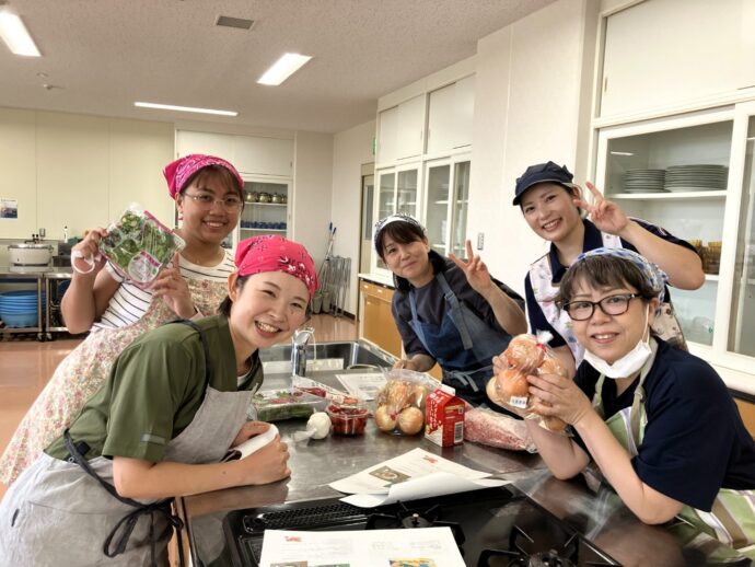 7月16日に行われたスマイル交流会は各国の手作り料理でおもてなしをしよう、という企画。日本の和風ハンバーグ~さわやかなベビーリーフを添えて~、韓国のピリ辛「お母さんのキムチチャーハン」、フィリピンの酸っぱいスープ「シニガンスープ」、ミャンマーの肉じゃが「チェッターアル」、そしてフィリピンの豆腐スイーツ「タホ」。