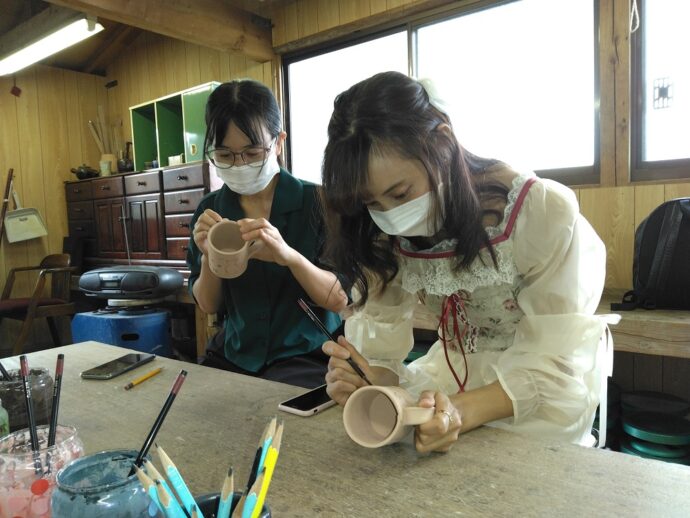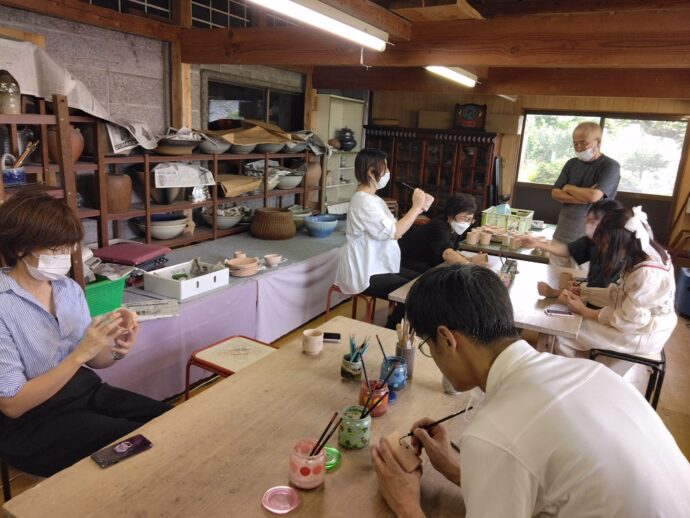 陶芸店で絵付け体験や、浮羽稲荷神社を参拝して、交流を深めました。