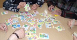 (み)んなで楽しむ かるたとり 時間わすれて みな夢中 あ~お手つき 一回休み