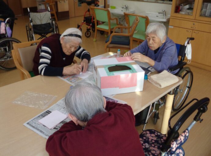 ゆで卵の皮むき、柿、梨の皮むき、抽選BOXの作成まで