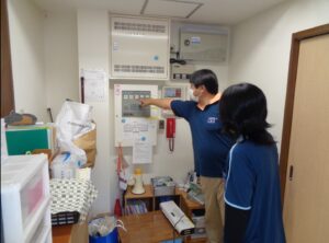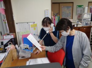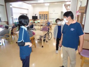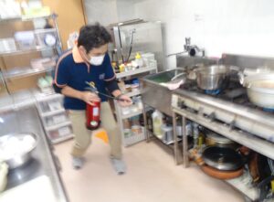 本日は厨房より出火という想定で訓練を行いました。 初期消火、失敗避難開始、消防への連絡、利用者外へ誘導、 誘導完了報告 本番は来てもらいたくないですがもしもの時の為にまた行います。 消火完了